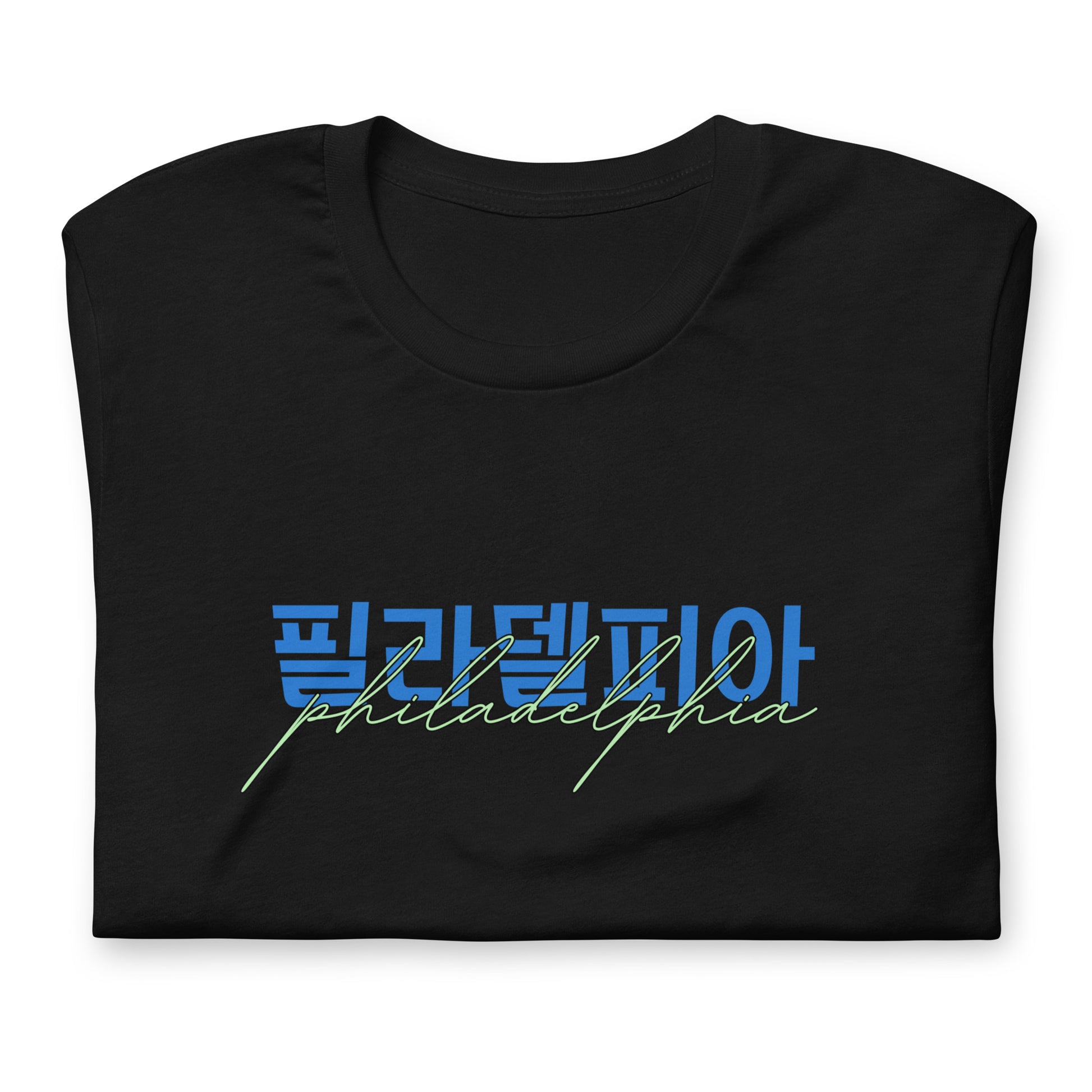 Subtly rep your love for Philadelphia and Korean culture with this crop top! This design showcases the name of "Philadelphia" beautifully written in Korean hangul script. The colors are from the official color palette City of Philadelphia!